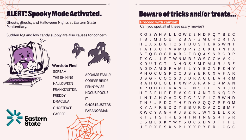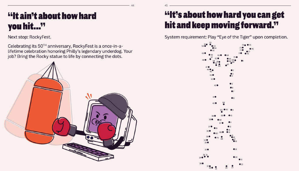 I designed and illustrated the pages below in Figma, building out the activities and bringing personality to the character across each spread.